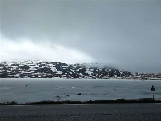 挪威波羅的海松恩峽灣,這里海面結(jié)冰、山上有積雪,地面植被變成了高寒植物: